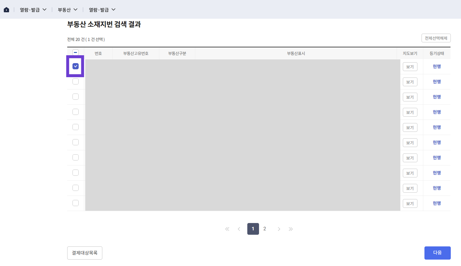 - ‘공동담보’, ‘매매목록’ 체크 가능