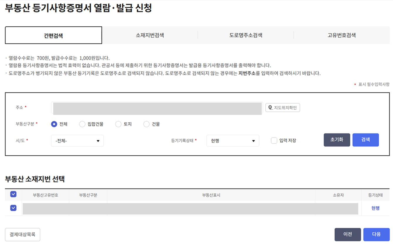 - 등기기록 유형은 ‘말소사항 포함’으로 설정 추천